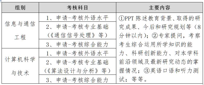 (2)考生根据报考导师所属学科,选择信息与通信工程、计算机科学与技术两个综合考核小组之一进行考核,具体考核内容如下: