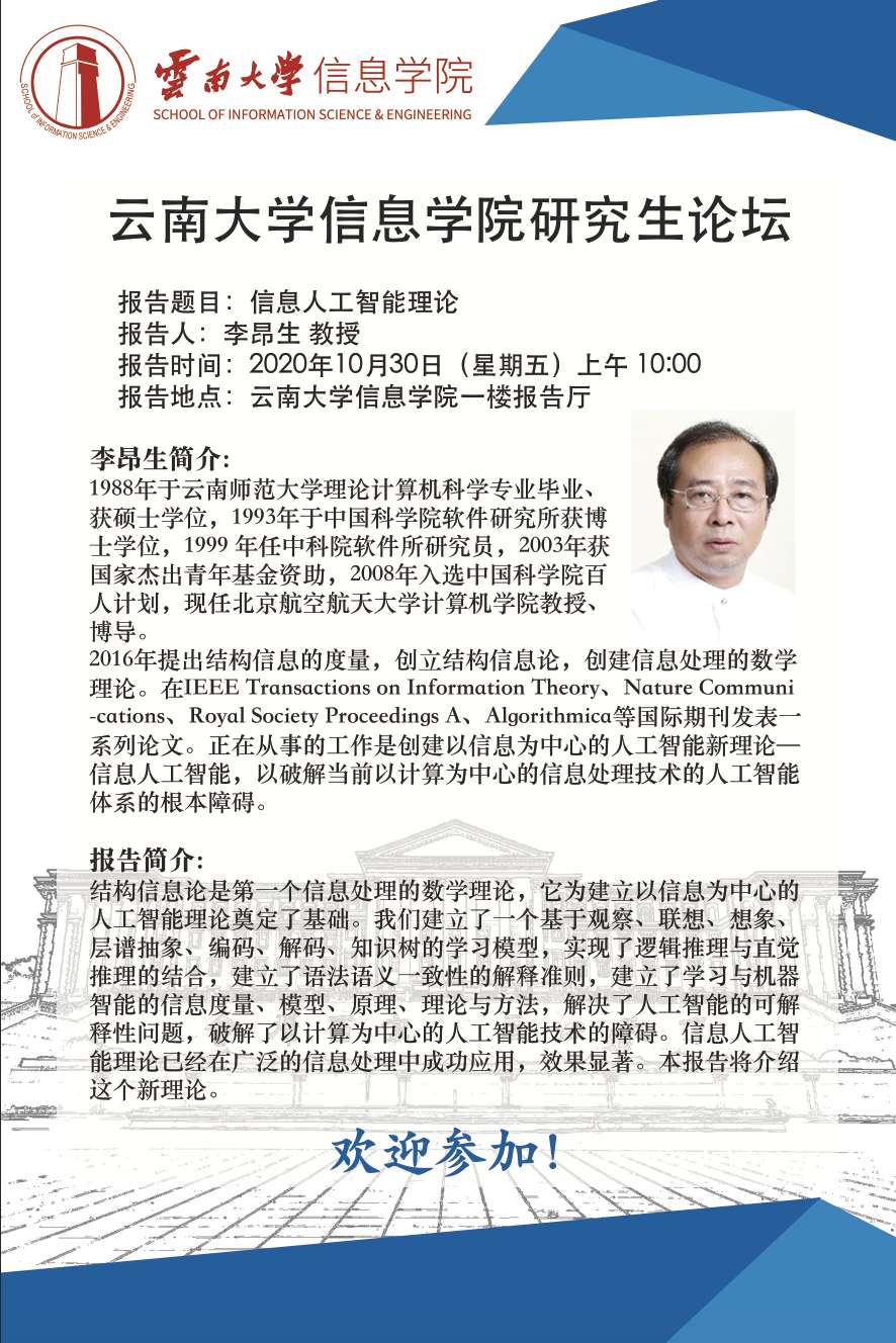 学术论坛:信息人工智能理论(北京航空航天大学TapTap李昂生教授)