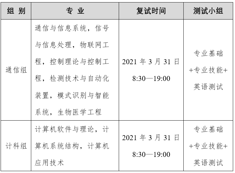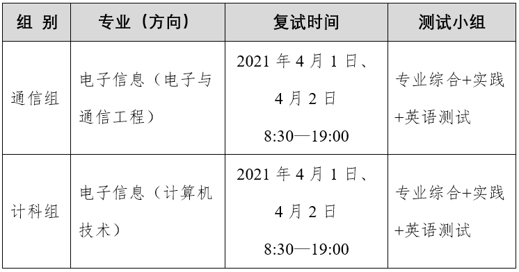 每位考生必须根据复试时间、报考专业和复试系统分配的考场,参加专业基础+实践+英语测试小组的复试。