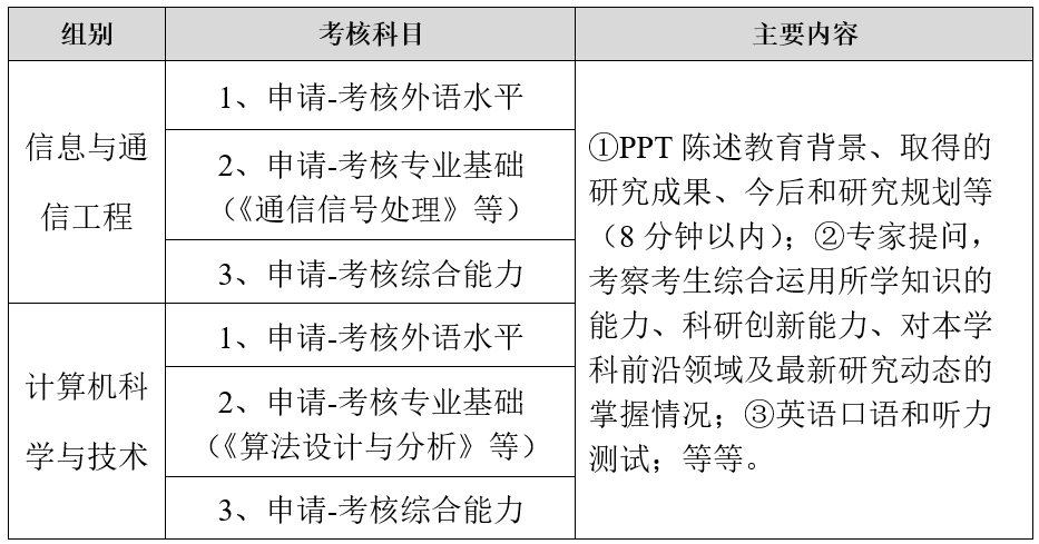 (2)考生根据报考导师所属学科,选择信息与通信工程、计算机科学与技术两个综合考核小组之一进行考核,具体考核内容如下: