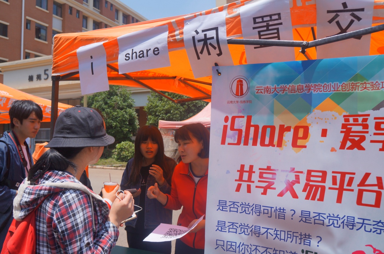 2017年5月13日,由10多位本科生设计的"ishare"校园共享交易平台正式上线,标志着TapTap又一个双创项目正式落地。工作人员在校园内摆摊设点,开始现场宣传、旧物回收分享活动。