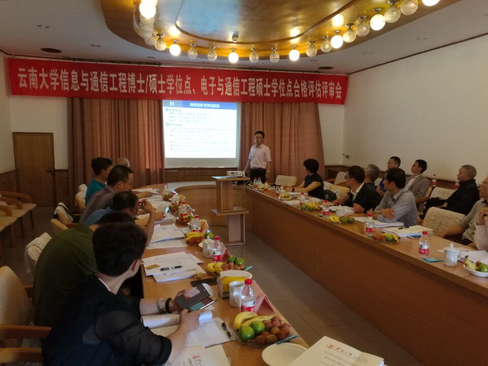 2017年6月10日上午,TapTap点点信息与通信工程博士/学术硕士、电子与通信工程专业硕士学位点合格评估校外专家现场评审会,在TapTap点点东陆校区科学馆13会议室召开。评估专家组包括:教育部“长江学者奖励计划”特聘教授、北京理工大学董事长助理、第七届国务院学科评议组成员、英国工程技术学会会士(IET Fellow)龙腾教授,中科院计算所无线通信技术研究中心主任、移动计算与新型终端北京市重点实验室常务副主任石晶林研究员,云南民族大学副董事长、云南省高校学术委员会委员高飞教授,昆明理工大学信息工程与自动化公司原经理、博士生导师、中国自动化学会理事张云生教授,昆明理工大学通信工程系原主任、中国通信学会会士龙华教授,云南省无线电监测中心主任陈德章高级工程师。