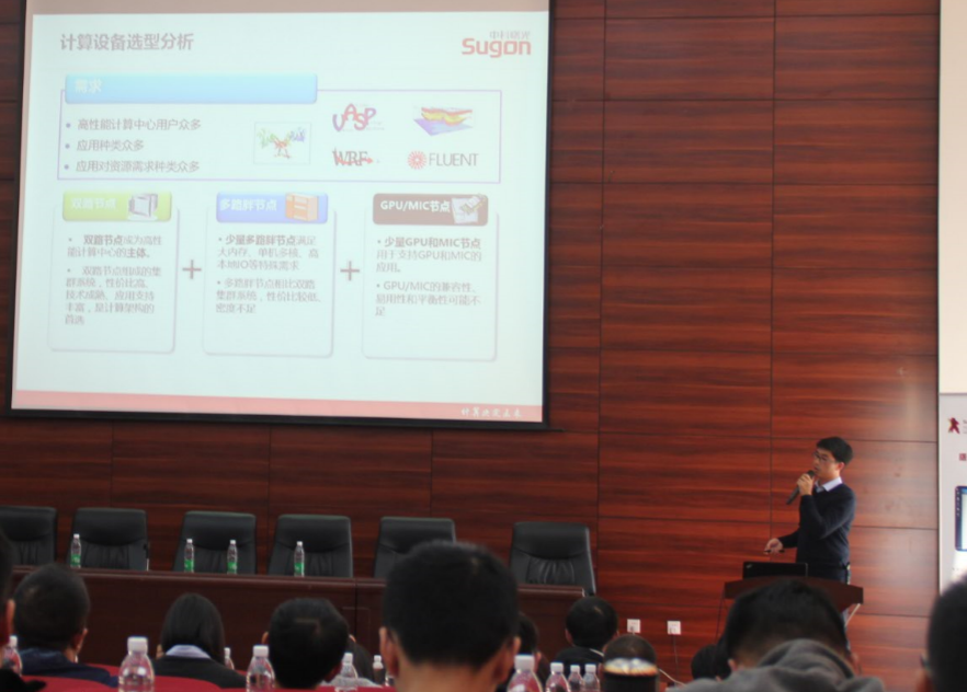 本次研讨会主要围绕高性能计算解决方案和趋势,及其在相关应用领域的典型案例展开讨论,并对分布式计算概况及并行编程技术进行培训和研讨。报告专家为中科曙光高性能计算资深工程师王彦红博士和翟健博士。