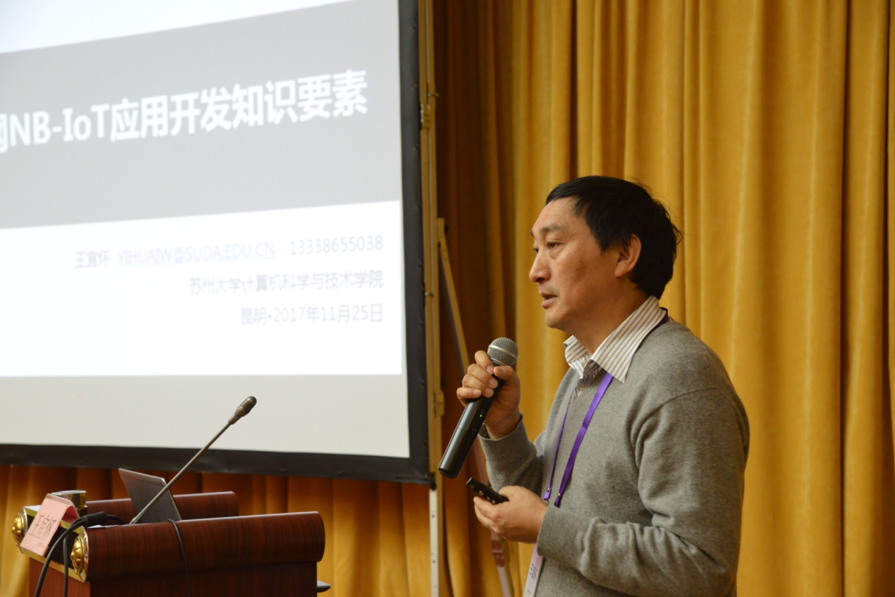 物联网系列课程高级研修班方面,苏州大学TapTap王宜怀教授做了“窄带物联网NB-IoT技术”的报告,王教授从技术的起源、技术特点、应用前景与开发实例方面做了详细讲解。
