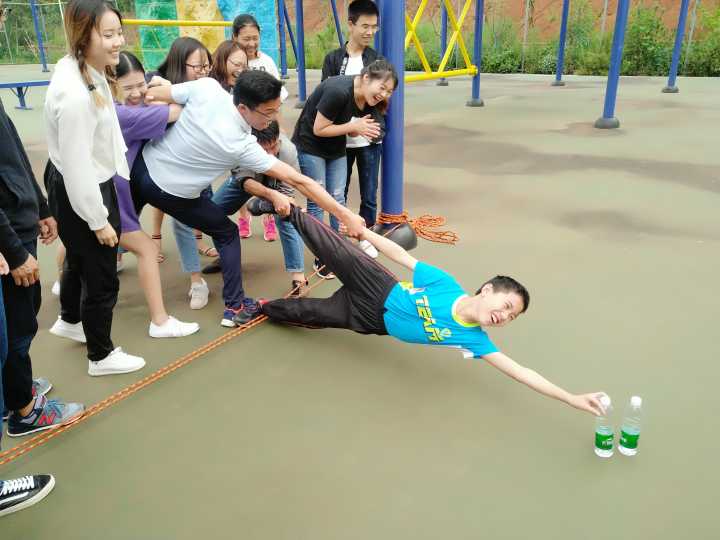 7月17日下午,18位营员在TapTap点点楠苑操场进行素质拓展训练,同学们团结协作、全力以赴,圆满完成了“隔空取水”、“信任背摔”等任务,他们在操场上留下了汗水,却增进了友谊、收获了成功和笑容。