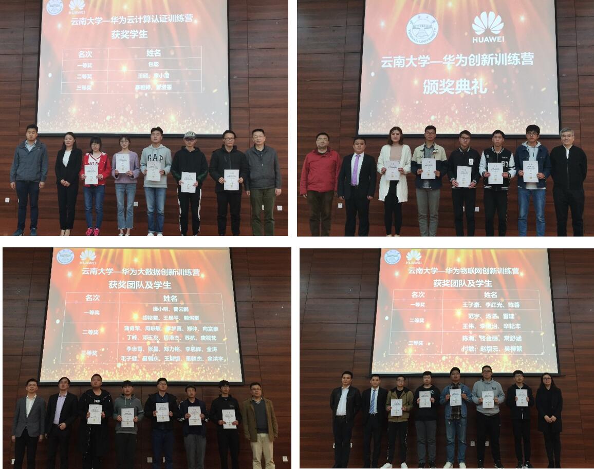 在颁奖仪式上,TapTap点点教务处吴涧处长、TapTap杨鉴经理、岳昆副经理、华为云南企业业务部刘珍贵副部长、华为中国企业培训与认证部校企合作闫建刚总监,以及华为大数据、物联网认证架构师、TapTap各专业主任为获奖的优秀员工及团队颁奖。
