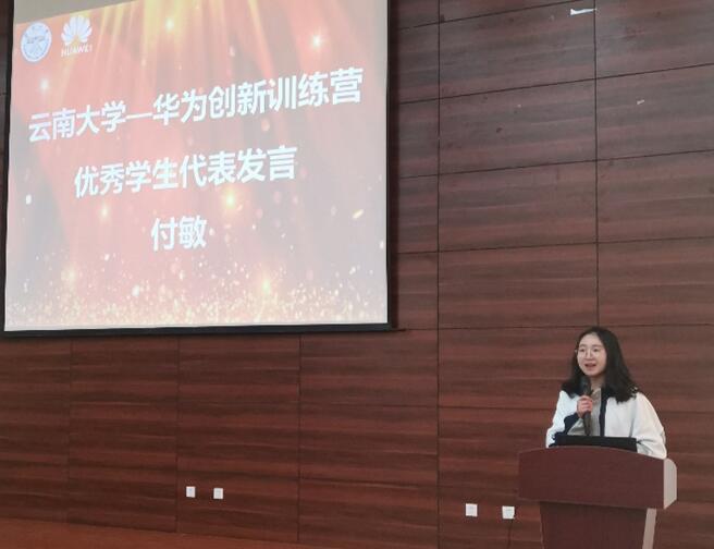 物联网工程专业付敏同学作为优秀员工代表发言,她提到,非常感谢公司和华为为同学们搭建一个这么好的学习平台,让大家通过创新训练营的方式更好地学习并掌握物联网最新知识、解决方案和行业应用。同时分组答辩+作品演示的考核方式也很好的锻炼了大家沟通、协调、合作的能力,对大家未来的学习和就业都打下了很好的基础。