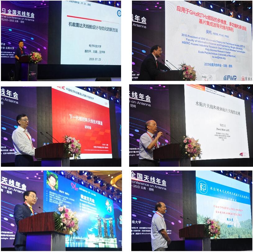 开幕式后,会议举行了精彩纷呈的高水平大会报告。由博士生导师聂在平教授,加拿大两院院士吴柯博士,中国电科14所所长胡明春研究员,英国皇家工程院院士陆贵文博士,新加坡工程院院士陈志宁博士,中国电科39所科技委主任段玉虎研究员,做了《机载雷达天线舱电磁特性设计与优化的新方法》、《应用于 GHz 和 THz 频段的多维、多功能和多波段基片集成波导天线和阵列》、《下一代相控阵天线技术展望》等主题报告。