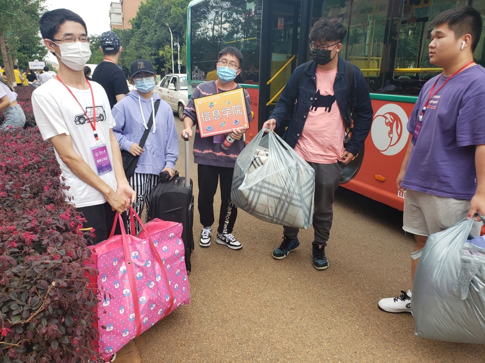 公司迎新点工作人员、志愿者分工明确,认真核查新生身份信息,做好工作记录,逐项发放新生手册及相关入学资料,整个报到过程井然有序。公司在西门迎接点、楠苑汽车站、校医院汽车站同时安排志愿者,引导乘坐摆渡车的新生入住宿舍。
