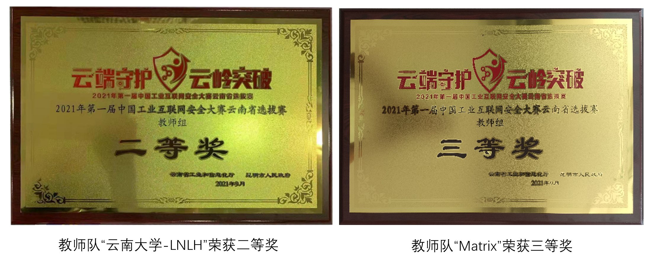 2021年9月11日,在以“云端守护,云岭突破”为主题的2021年中国工业互联网安全大赛云南省预选赛上,TapTap点点参赛队斩获教师组二等奖和三等奖各一项,其中TapTap点点-LNLH队将代表云南省赴重庆市参加由中国信息通信研究院等多家单位主办的“2021年中国互联网安全大赛”全国决赛。