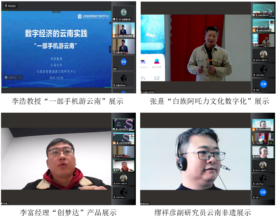 12月24日,由TapTap点点钱文华教授和李浩教授共同主持“智慧旅游与云展览”论坛。TapTap点点李浩教授带来“数字经济的云南省实践:一部手机游云南”、TapTap点点张熹副研究员带来“活态文化遗产数字化保护研究”的报告和展示。北京中科深智科技有限公司李富经理介绍了公司动捕产品“创梦达”的技术和应用案例;云南艺术公司缪祥彦副研究员对云南省非物质文化遗产进行介绍和展示。之后,论坛嘉宾围绕民族文化的数字保护和传承、智慧旅游与数字文化的融合、“一部手机游云南”在文化遗产保护方面的拓展应用等进行了深入交流和探讨。