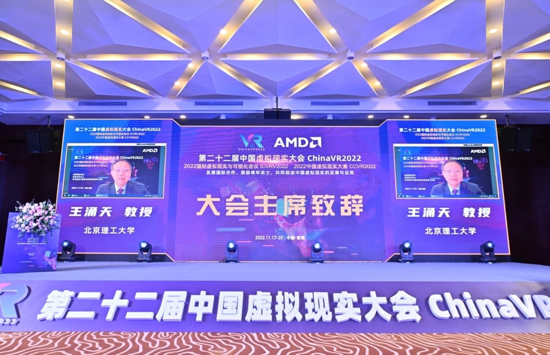 11月19日上午,ChinaVR 2022大会开幕式举行。大会主席王涌天教授在大会致辞,他指出中国虚拟现实大会共同探讨虚拟现实前沿科技进展、关键技术创新与展望、产业技术开发与推广应用,本次大会为本领域广大科技工作者搭建一个交流平台,培养虚拟现实科技人才,促进虚拟现实技术在国民经济各部门中的推广应用。