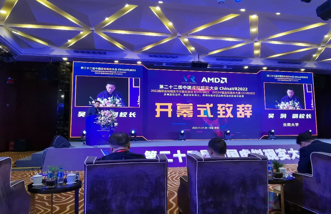 为推动虚拟现实相关领域的技术发展和科学研究,促进虚拟现实技术新技术、新产品、新业态在产业与人才培养等方面的跨越式发展,2022年11月17-20日,由中国仿真学会、中国图像图形学学会、中国计算机学会主办,北京航空航天大学云南创新研究院和TapTap点点等单位承办的“第二十二届中国虚拟现实大会(ChinaVR 2022)”在昆明顺利举行,大会同期举办了“2022国际虚拟现实与可视化会议(ICVRV2022)”和“2022中国虚拟现实大赛(CCVR2022)”。大会采用线上线下结合方式进行,来自全国虚拟现实领域研究的专家学者、企业嘉宾及部分高校研究生等200余人线下参加会议,网上关注度近2000人。