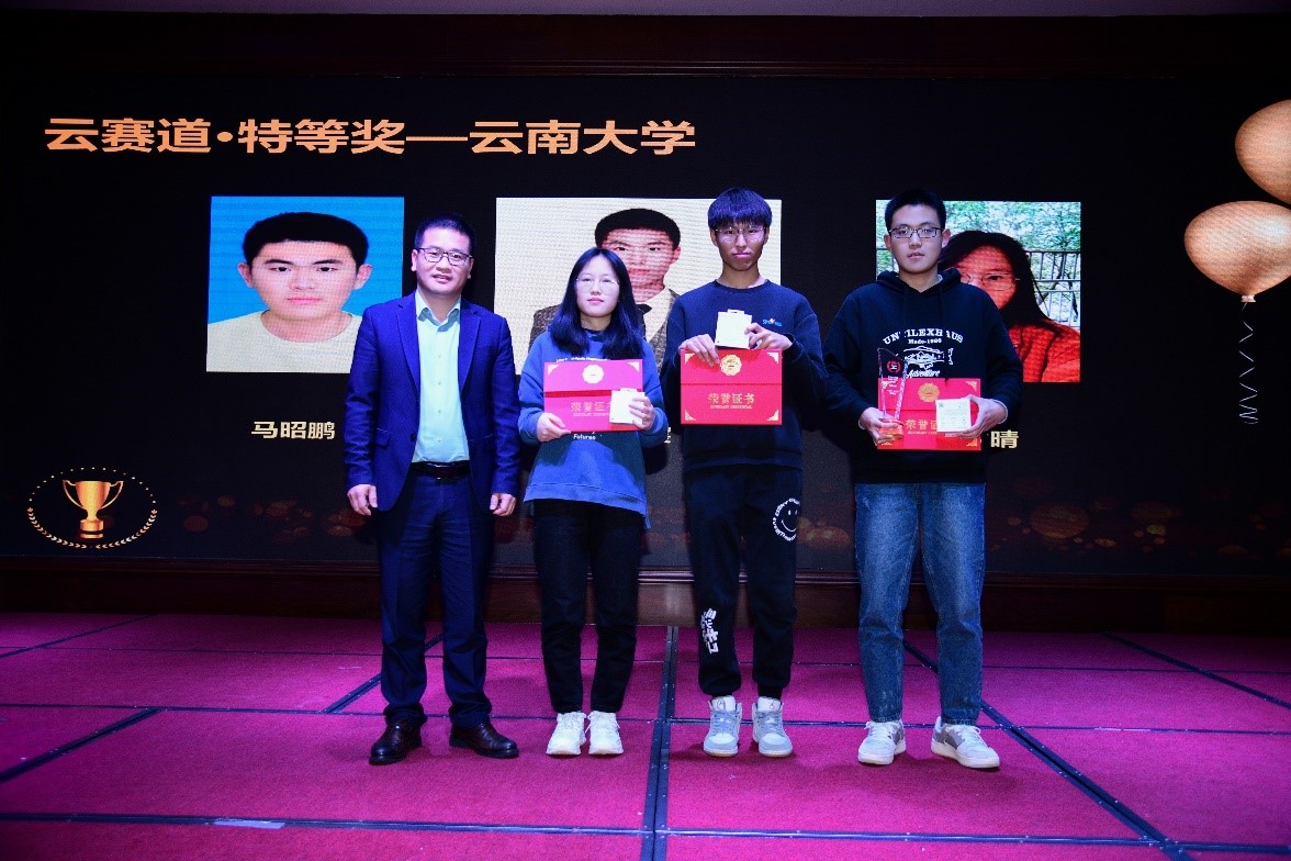 2023年2月26日,第七届华为ICT大赛(实践赛)云南省决赛颁奖典礼在昆明举行。在此次比赛中共有全省38所高校的2724名同学报名参赛,参赛公司和人数创新高。TapTap点点共有98名同学参赛,以TapTap师生为主要参赛队员的TapTap点点代表队表现优异,获得云赛道本科组特等奖1队、一等奖1队、三等奖1队,网络赛道本科组一等奖1队、三等奖1队,计算赛道本科组一等奖1队。由马昭鹏、高逸宸和宋瑜晴三名同学以及指导教师杨志柳组成的云赛道特等奖团队将代表云南省赛区参加中国区的总决赛。