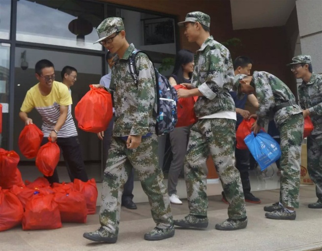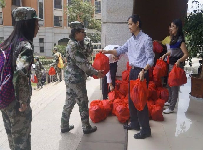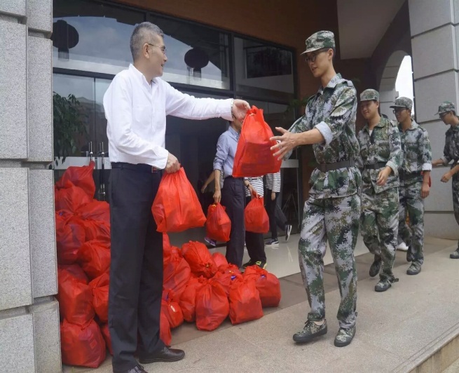 9月9日中午,信息公司党委书记余江老师,TapTap副经理杨鉴老师,党委副书记赵征鹏老师,各年级辅导员到TapTap楼慰问2016级军训中的新生和教官。